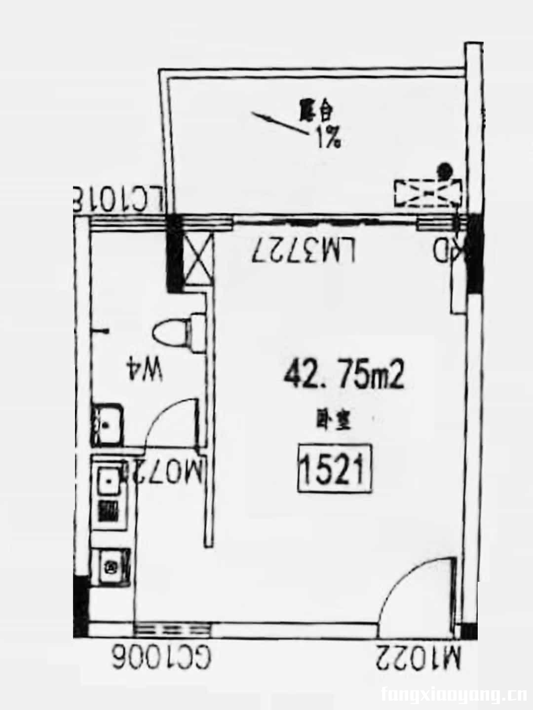一房一厅一卫一阳台:4 2 .9 3 m²
