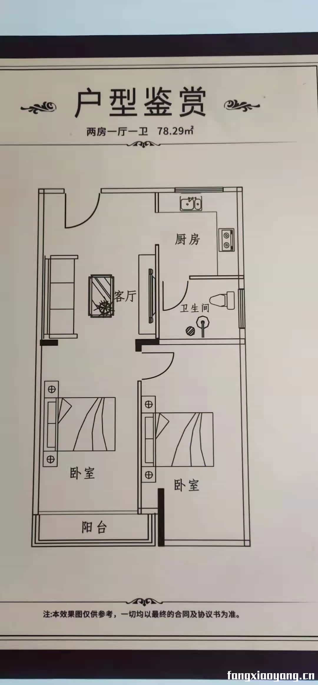 二房二厅一卫一阳台:78㎡